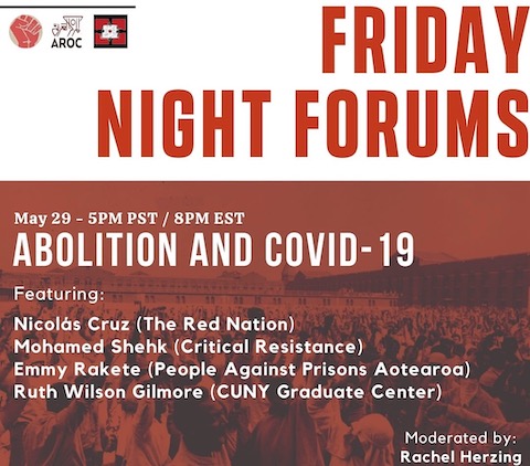 This seventh installment of the Friday Night Forums series CPE hosted in collaboration with The Red Nation and Arab Resource and Organizing Center examines how abolitionist politics can help us build international solidarity during the COVID-19 pandemic. Featuring Nicolás Cruz, Ruthie Wilson Gilmore, Emmy Rakete, and Mohamed Shehk.