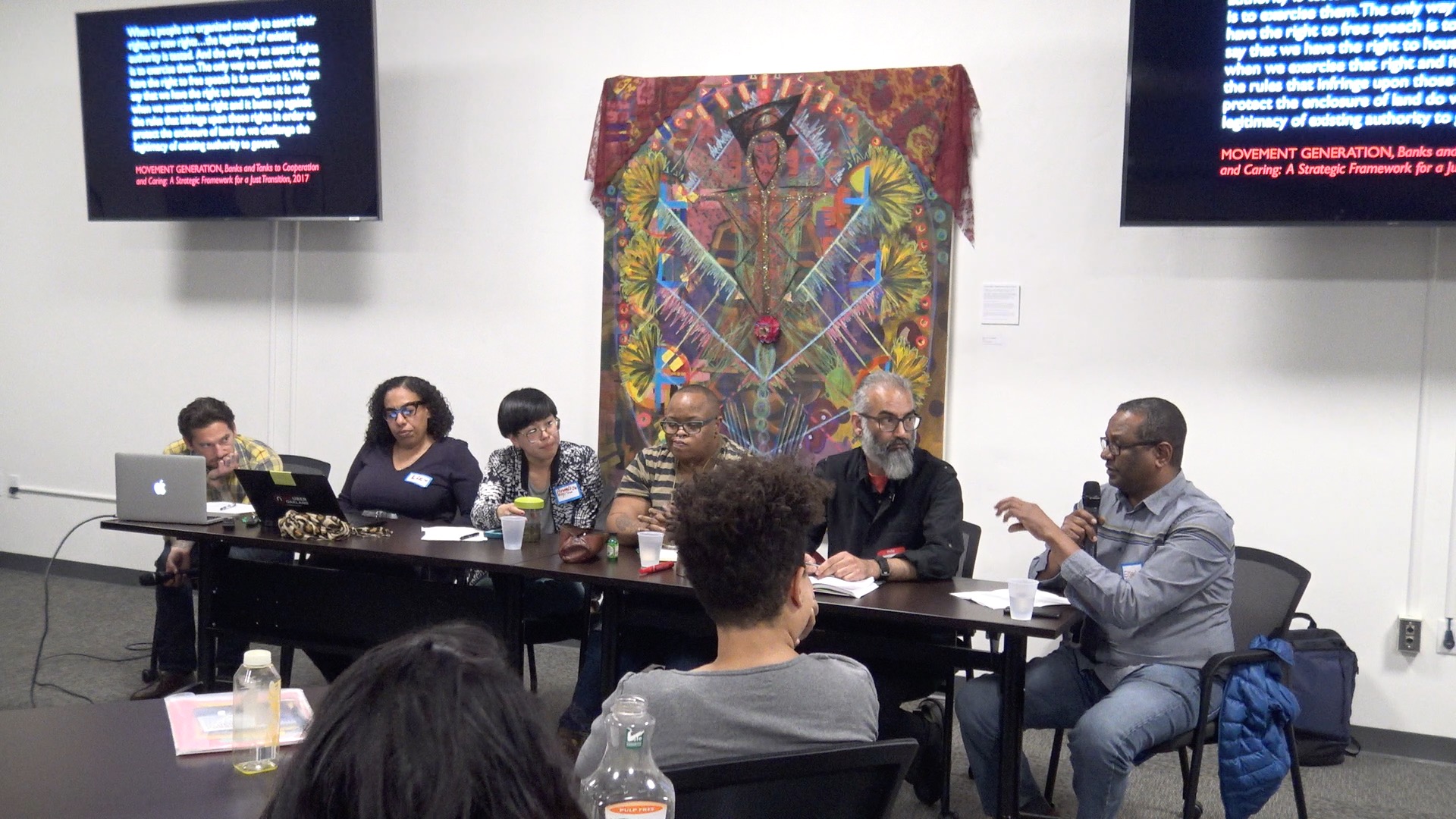 Elsadig Elsheikh (Haas Institute), Cazembe Jackson (Freedom Road Socialist Organization), Charandev Singh (advocate and legal worker from Australia), Annelisa Luong (Chinese Progressive Association), and Liz Derias-Tyehimba (Greenlining Institute) discuss the future of anti-capitalist theory and practice.